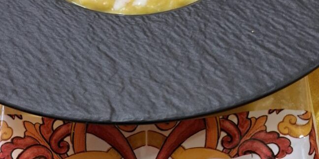 Per prima cosa preparare la crema di mozzarella affumicata di bufala, sminuzzatele grossolanamente e frullare e tenere da parte. Portare a bollore il brodo vegetale, nel frattempo avremo messo in infusione i pistilli di in, una risottiera tostare il riso e sfumare con il vino bianco, quindi portare a cottura aggiungendo brodo vegetale al bisogno. A metà cottura aggiungere la crema di mozzarella di bufala ed amalgamare bene. Versare l’infusione di pistilli di zafferano. Togliere dal fuoco e mantecare con il parmigiano ed il burro e il restodella crema. Per impiattare mettere il risotto al centro del piatto e battere il fondo con il palmo della mano per uniformare. Completate con pistilli di zafferano e la crrma di mozzarella di bufala