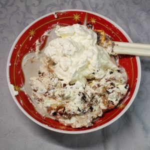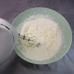 - In un’altra ciotola, monta la panna ben fredda finché non diventa soda.
