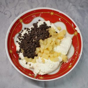 - Unisci delicatamente la panna alla ricotta, mescolando dal basso verso l’alto per non smontare il composto.