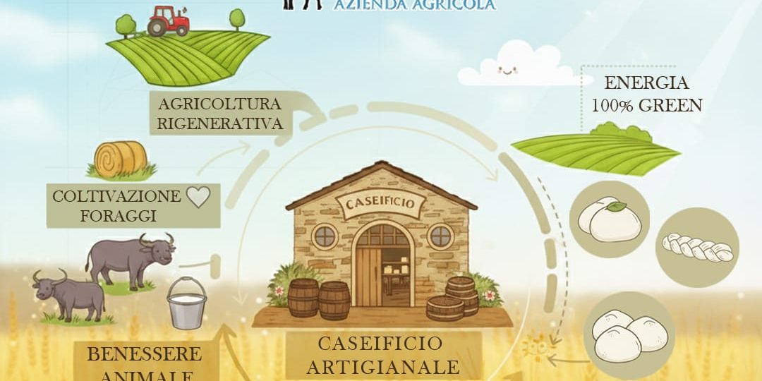 - Agricoltura rigenerativa: gestiamo i terreni per preservare la fertilità del suolo e garantire un nutrimento naturale alle nostre bufale.