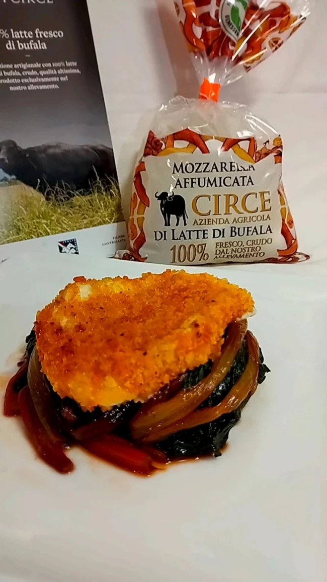 Mozzarella di bufala affumicata impanata su bieta arcobaleno 🌈